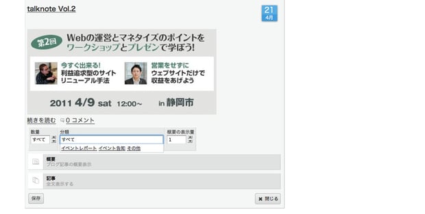 さて、ここで大事なポイントを飛ばして説明しました。Jimdoのブログに慣れてる人はこれでわかったと思いますが、上記画像にあるイベントレポート、イベント告知、その他などの文字が自分のブログには出てこないぞ!!と混乱されている方もいらっしゃるかもしれません。