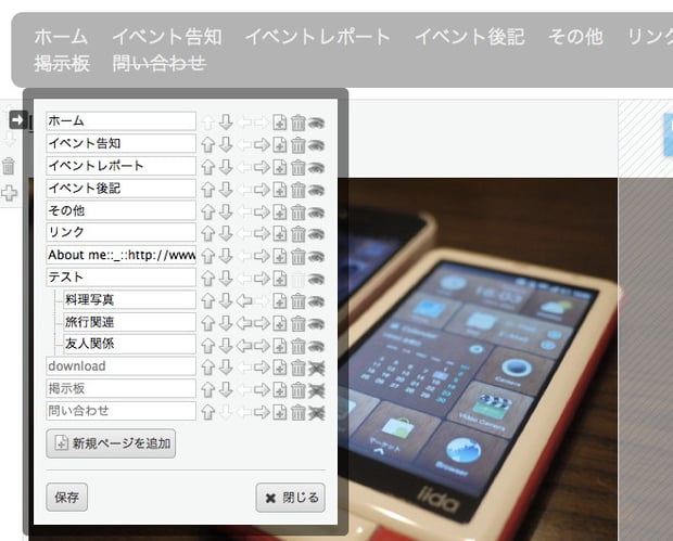通常のメニューの1階層下にページを儲けました。1階層下にページを作成するのは、右向きの矢印(→)をクリックするだけです。